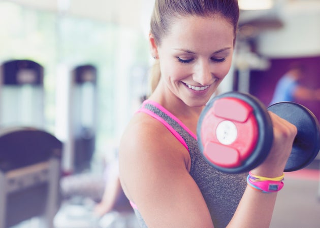 You may need to start with 5-pound dumbbells, or just the barbell with no weights attached. That's okay. "Correct form and full range is much more important than how much weight you are lifting," Romeo says."Start slow, and go at your own pace."